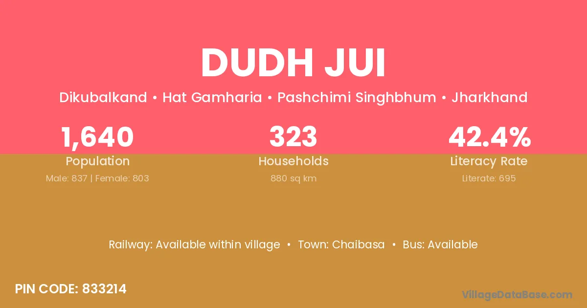 According to Census 2011 information, the village code of Dudh Jui village is 833214.