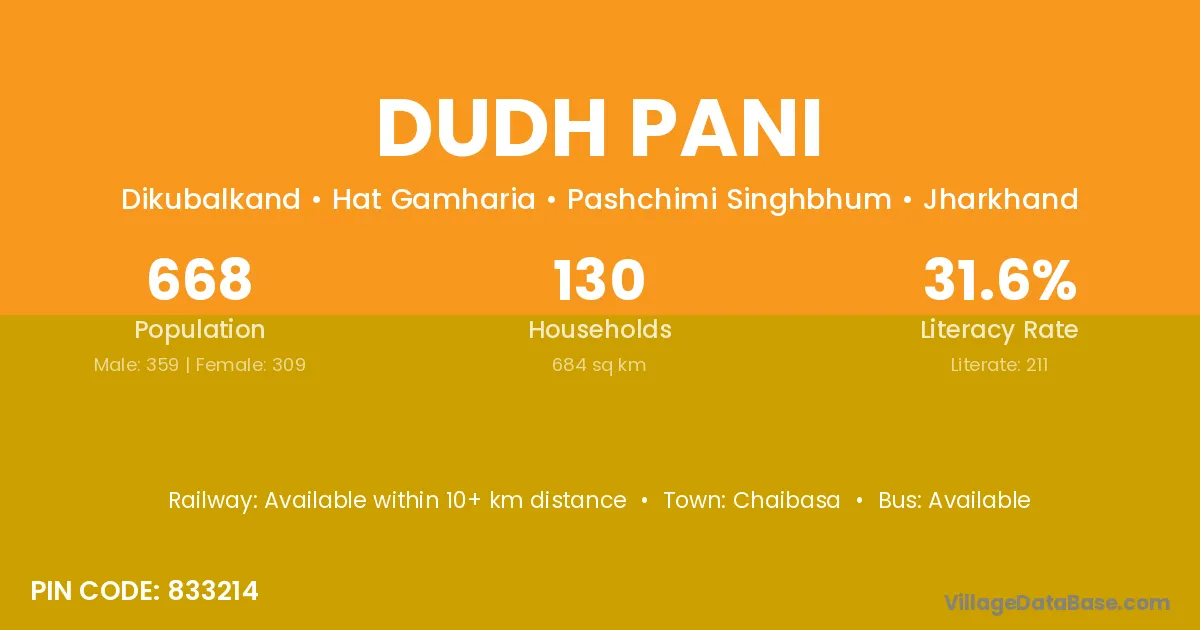 According to Census 2011 information, the village code of Dudh Pani village is 833214.