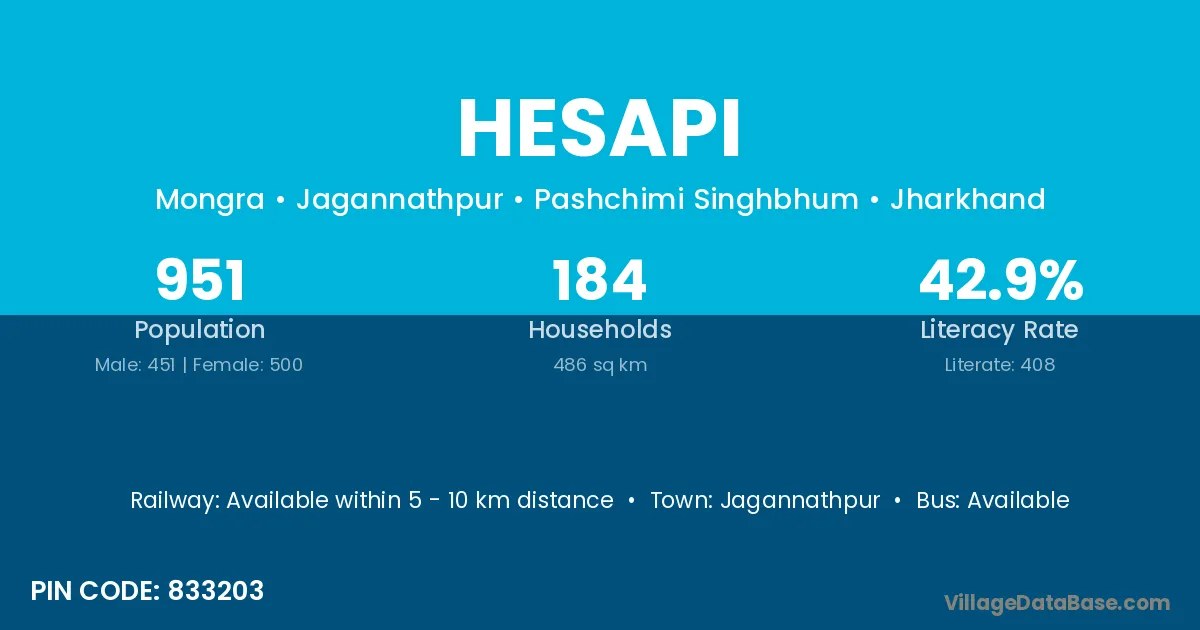 According to Census 2011 information, the village code of Hesapi village is 833203.