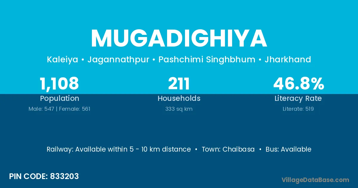 Chaibasa is the nearest town to Mugadighiya village for major economic activities