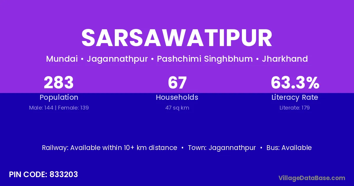 According to Census 2011 information, the village code of Sarsawatipur village is 833203.