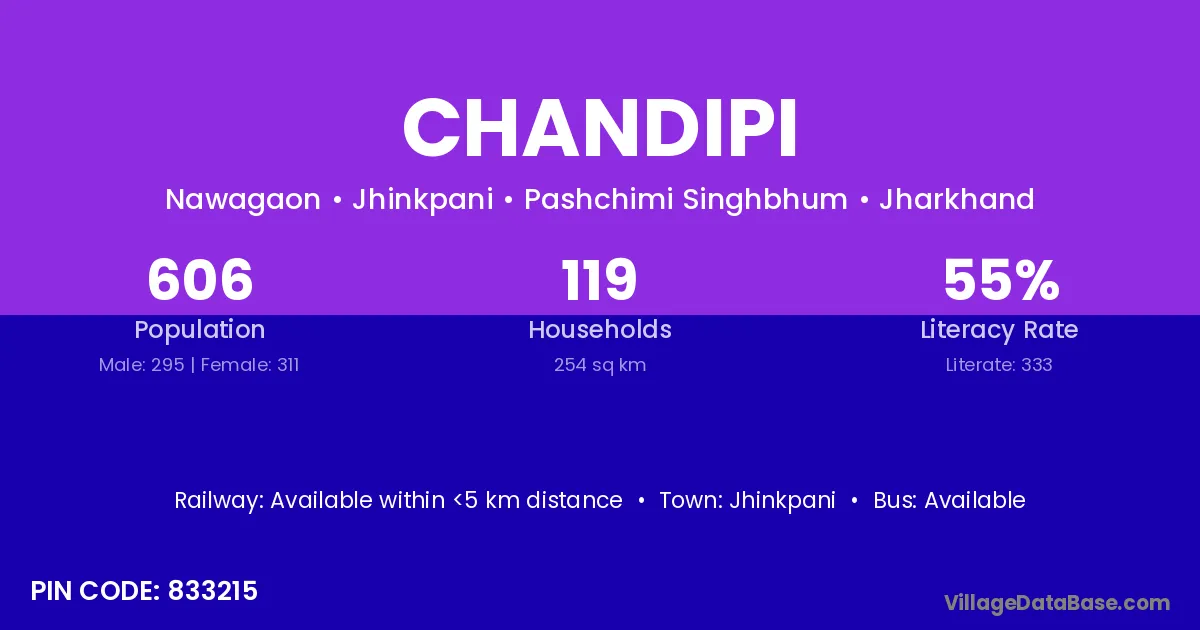 According to Census 2011 information, the village code of Chandipi village is 833215.