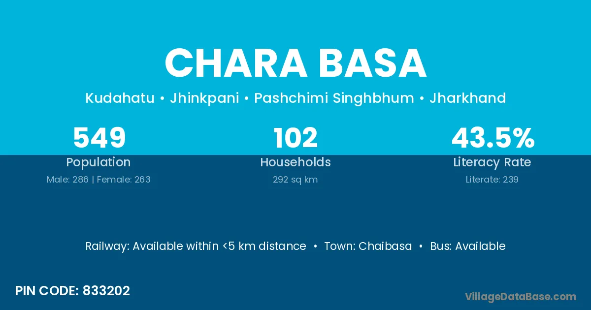 Chaibasa is the nearest town to Chara Basa village for major economic activities