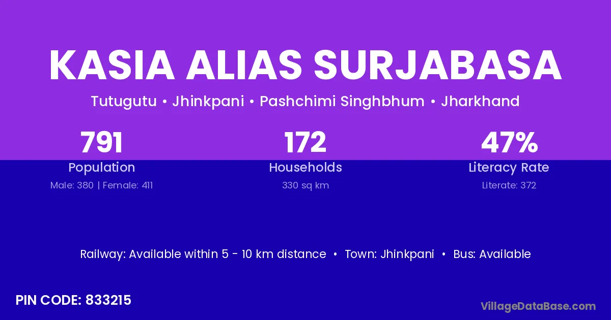 According to Census 2011 information, the village code of Kasia Alias Surjabasa village is 833215.