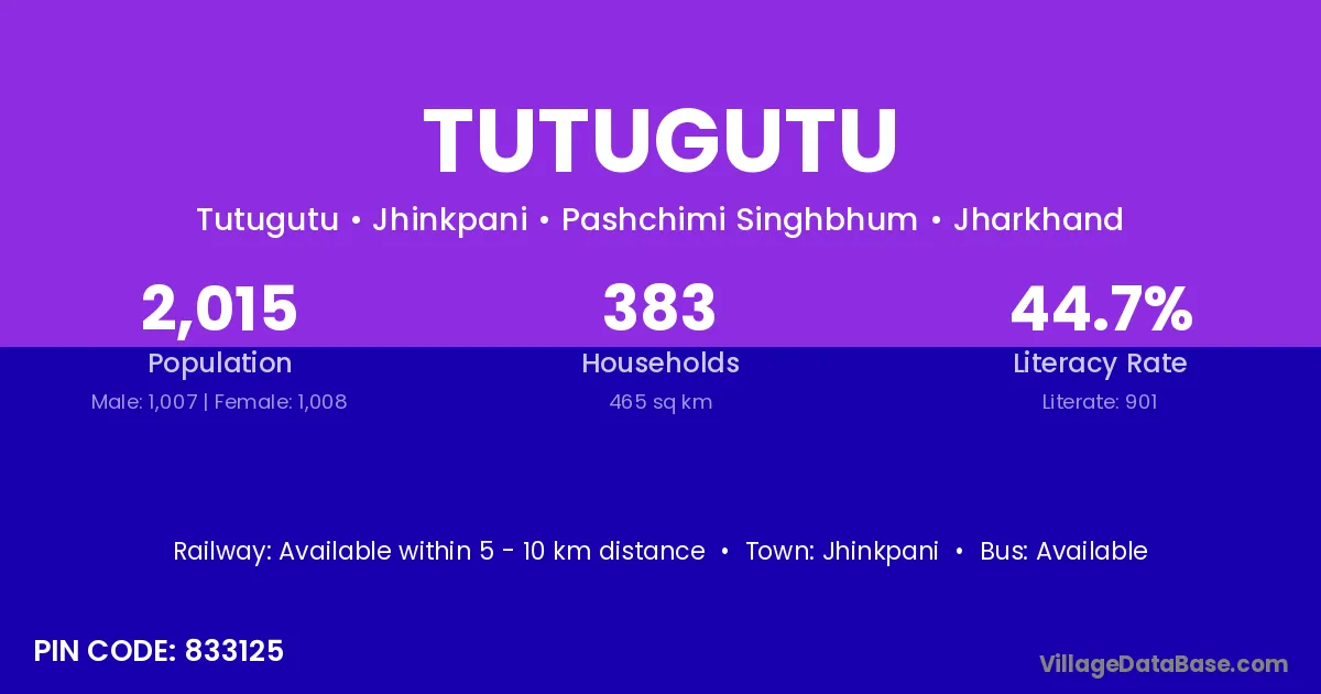 Jhinkpani is the nearest town to Tutugutu village for major economic activities