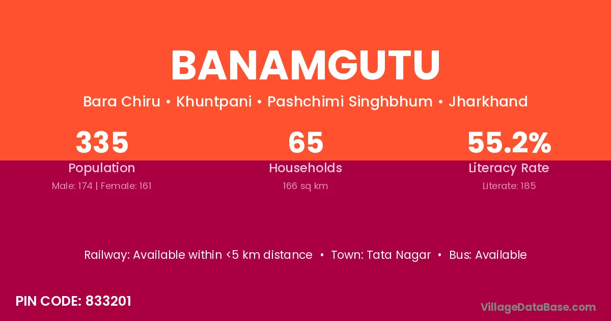 Tata Nagar is the nearest town to Banamgutu village for major economic activities