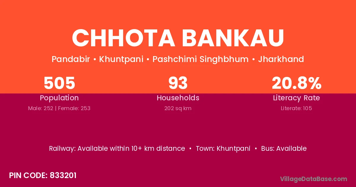 Chhota Bankau village has a total population of 505 people, of which 252 are males and 253 are females.