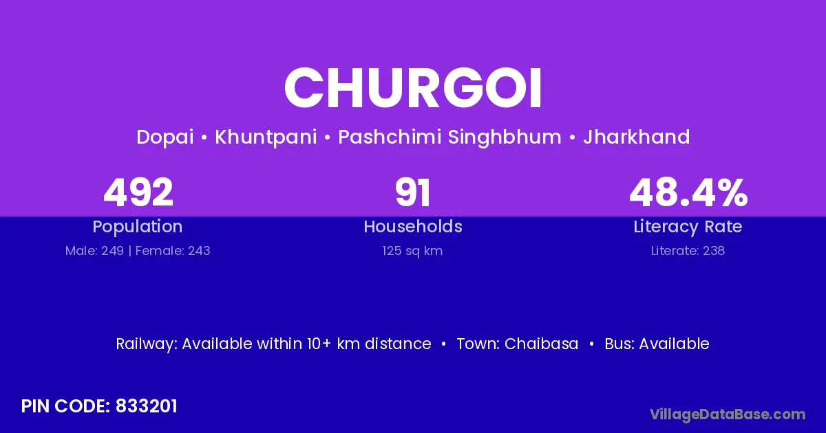 Chaibasa is the nearest town to Churgoi village for major economic activities