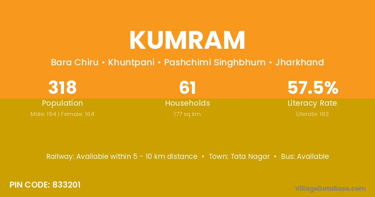 Tata Nagar is the nearest town to Kumram village for major economic activities