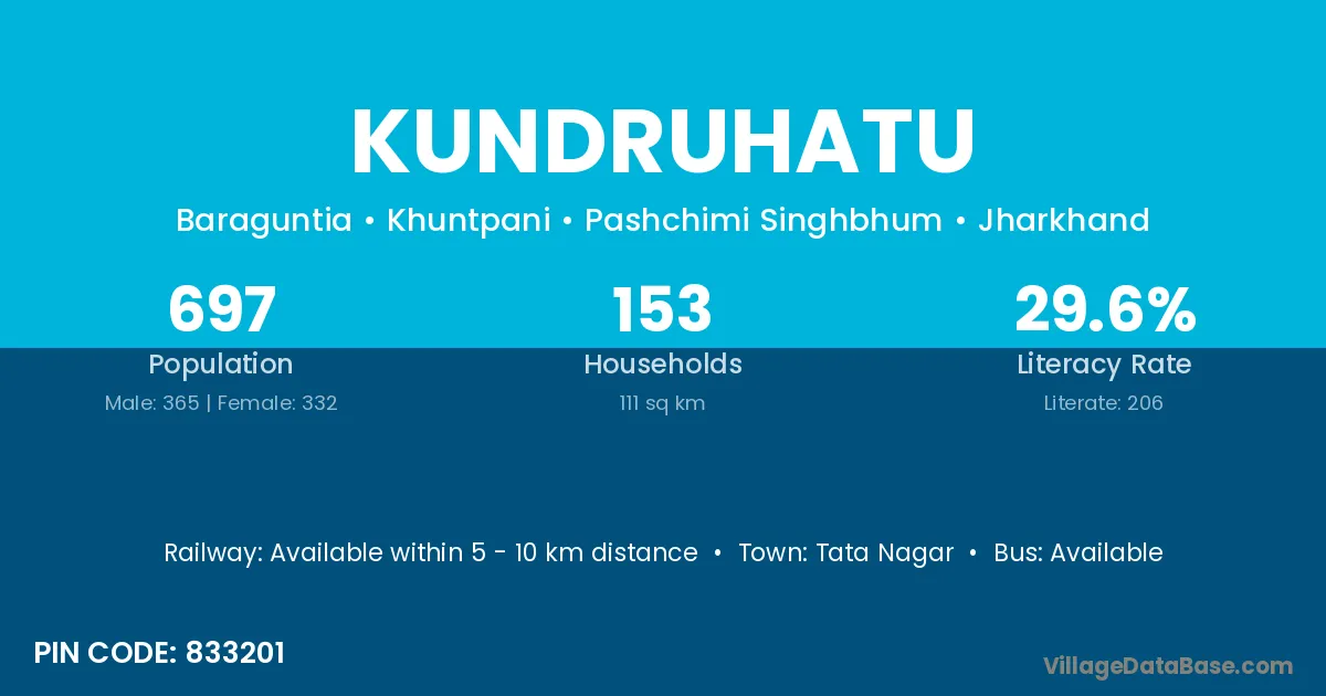 Tata Nagar is the nearest town to Kundruhatu village for major economic activities