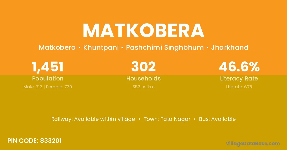 Tata Nagar is the nearest town to Matkobera village for major economic activities