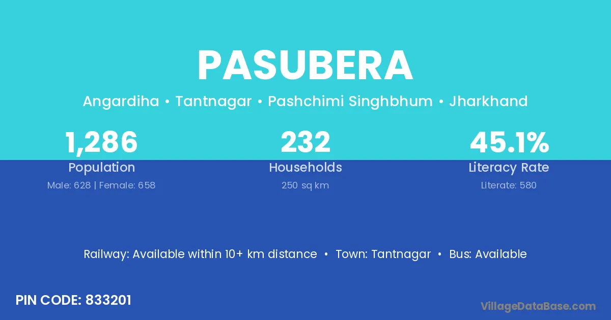 Khuntpani is the nearest town to Pasubera village for major economic activities
