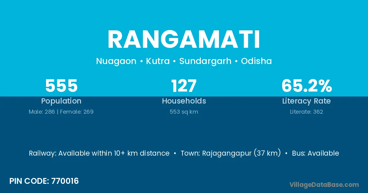According to Census 2011 information, the village code of Rangamati village is 833201.