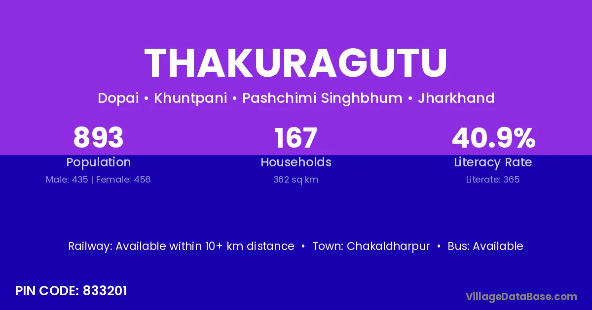 According to Census 2011 information, the village code of Thakuragutu village is 833201.