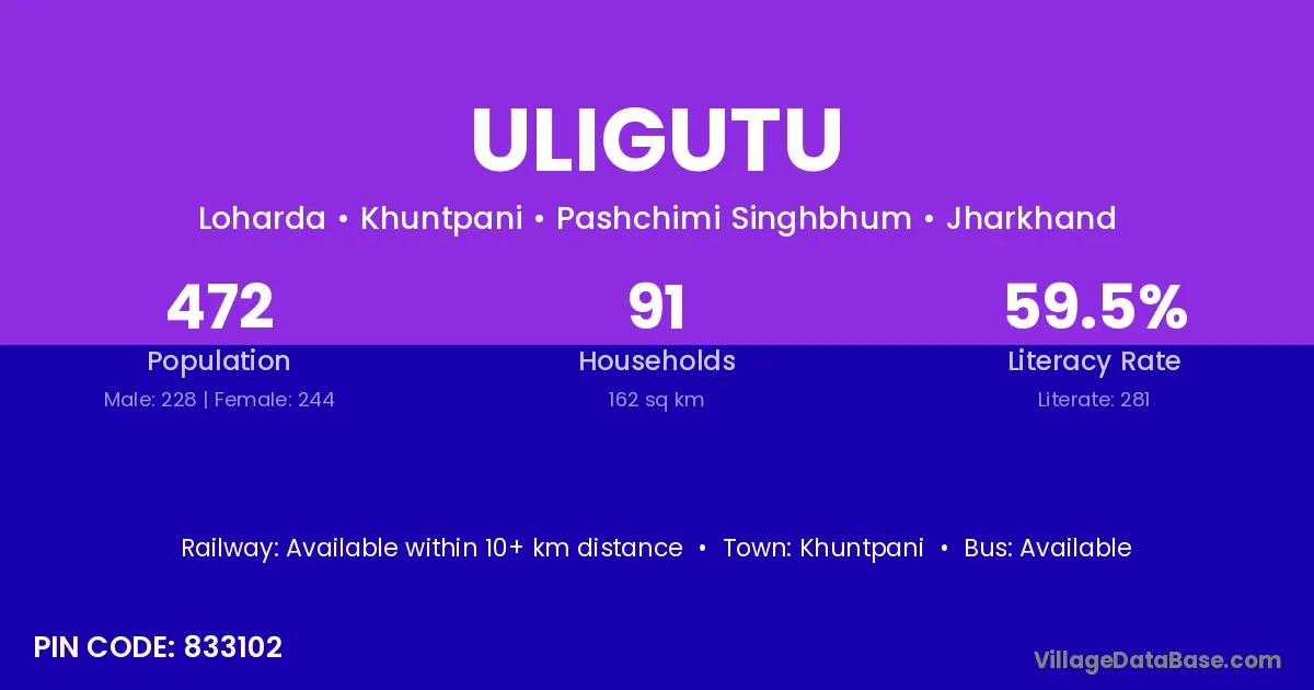 Khuntpani is the nearest town to Uligutu village for major economic activities