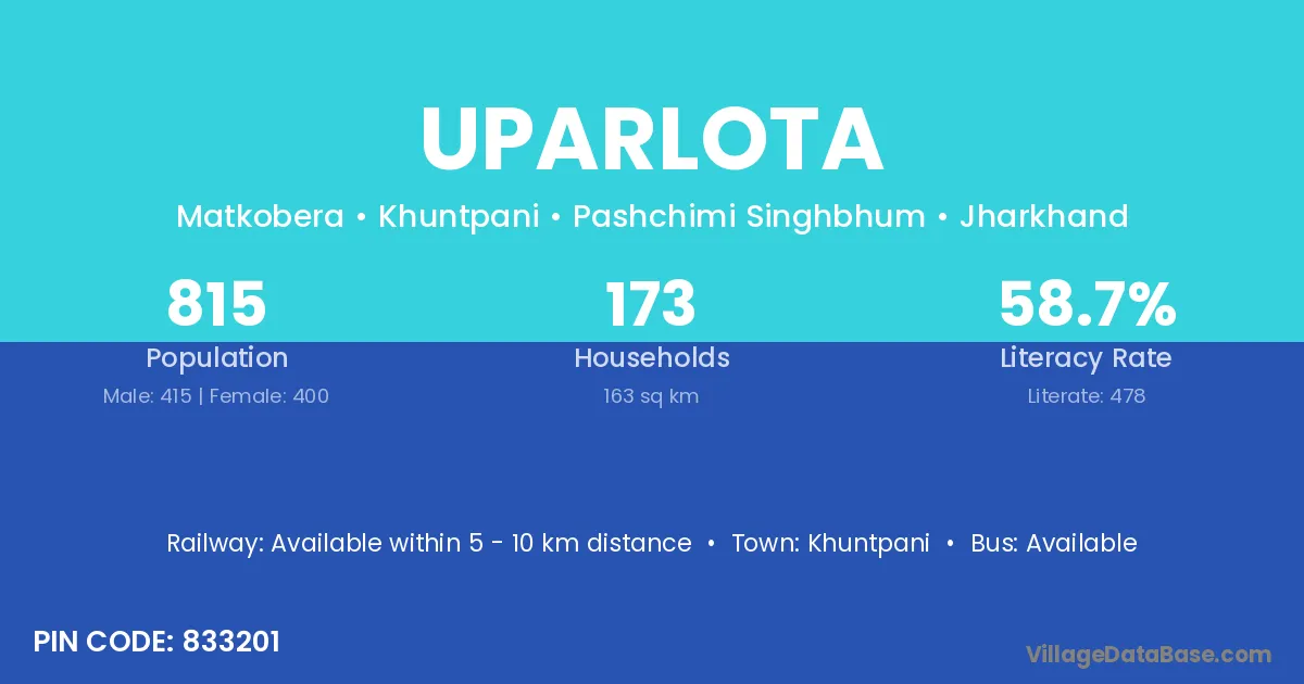 Khuntpani is the nearest town to Uparlota village for major economic activities