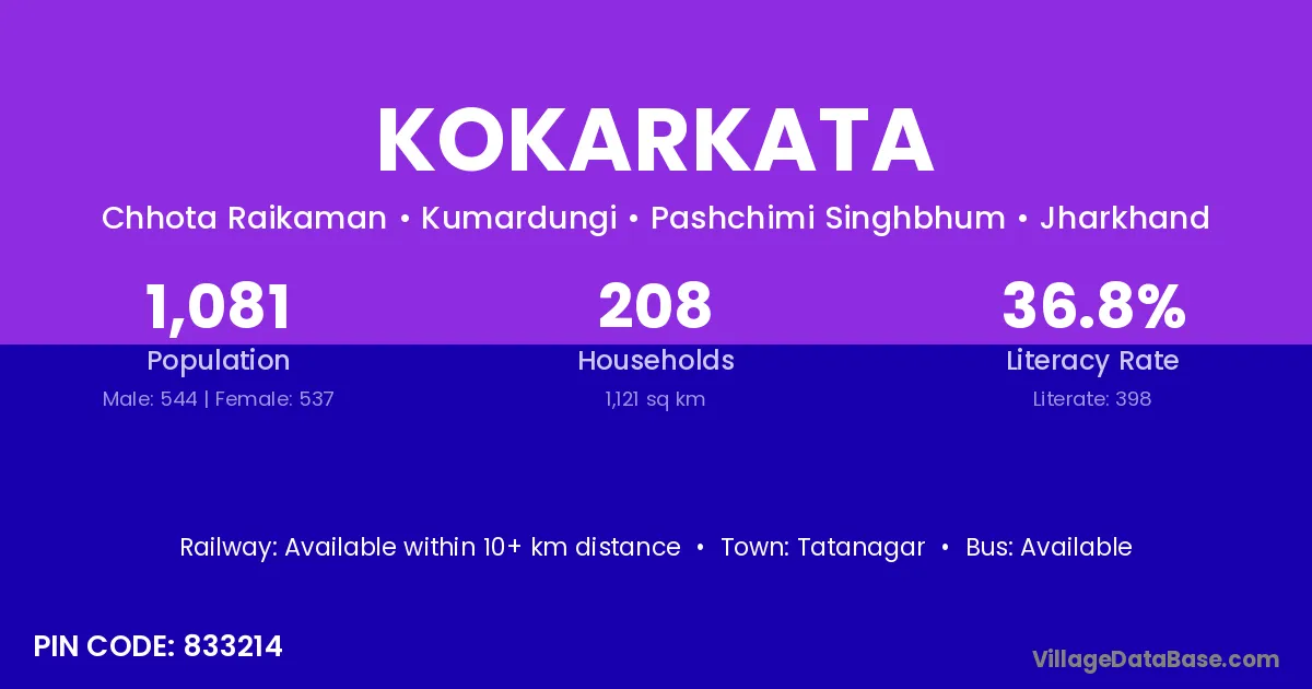 According to Census 2011 information, the village code of Kokarkata village is 833214.