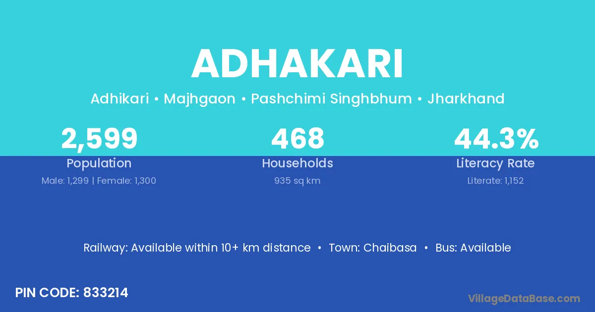 According to Census 2011 information, the village code of Adhakari village is 833214.