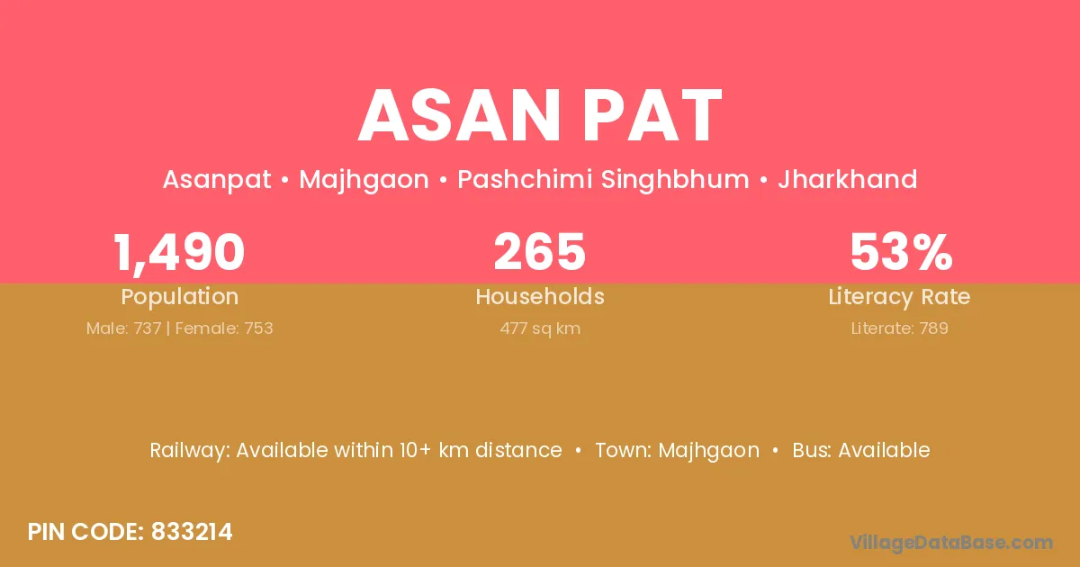 According to Census 2011 information, the village code of Asan Pat village is 833214.