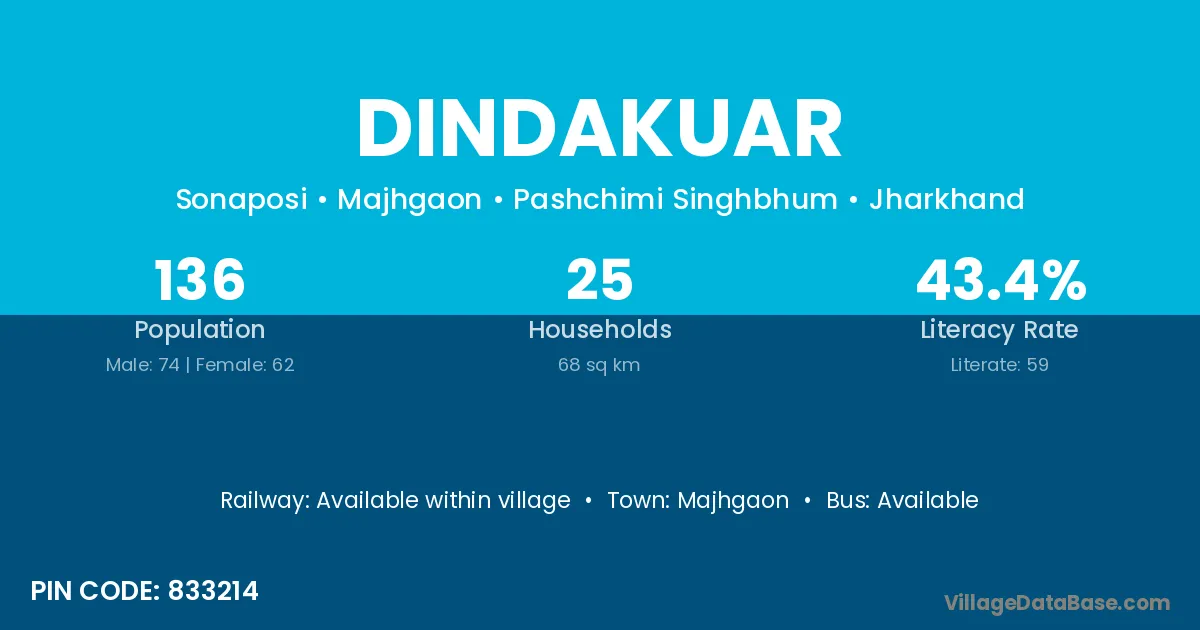 According to Census 2011 information, the village code of Dindakuar village is 833214.