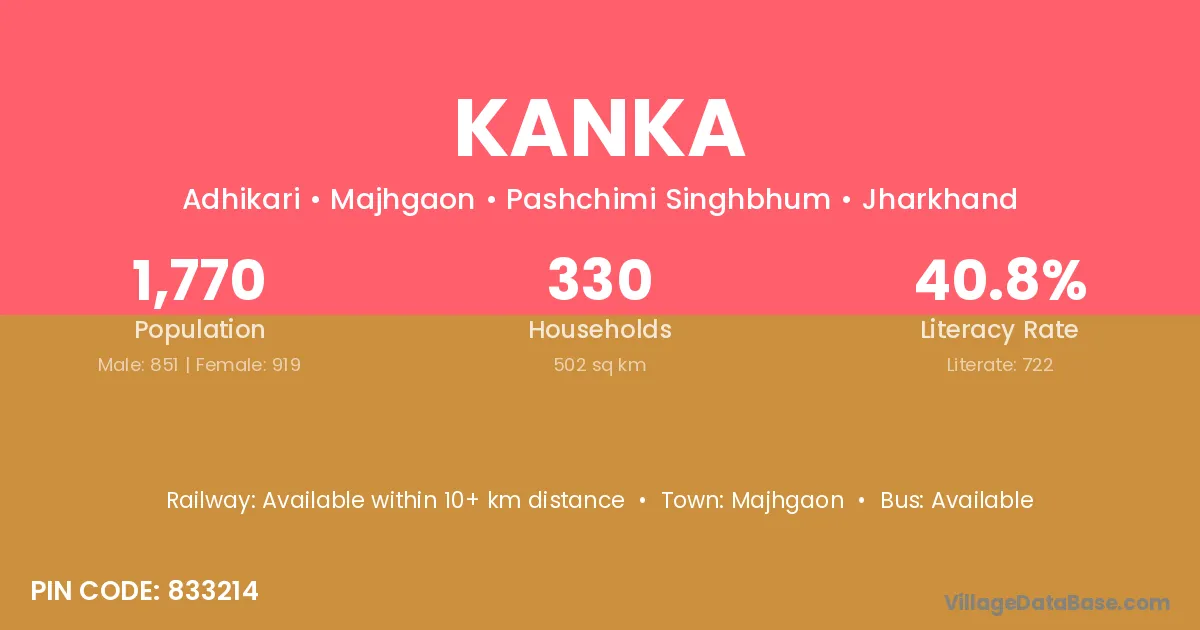 Kanka village is located in the Majhgaon Subdivision of the Pashchimi Singhbhum district in Jharkhand .