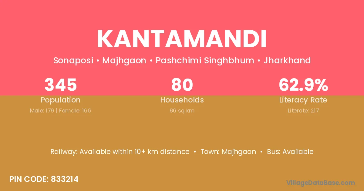Kantamandi village has a total population of 345 people, of which 179 are males and 166 are females.