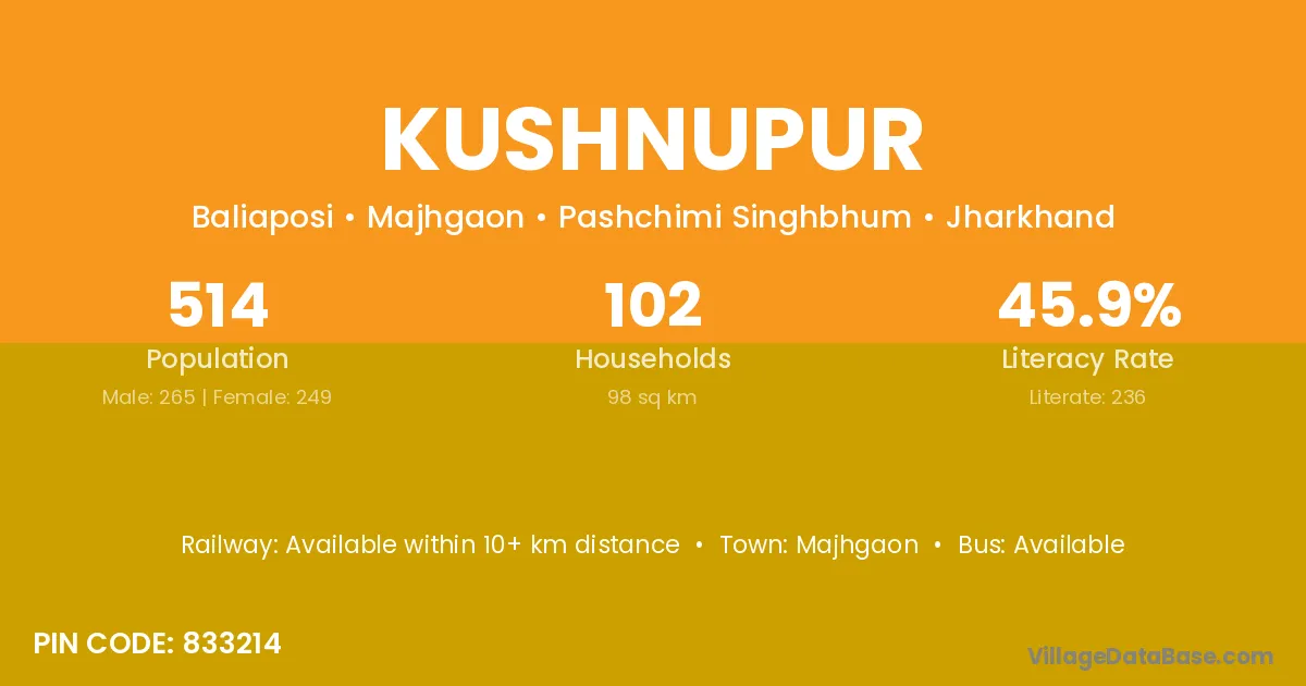 According to Census 2011 information, the village code of Kushnupur village is 833214.
