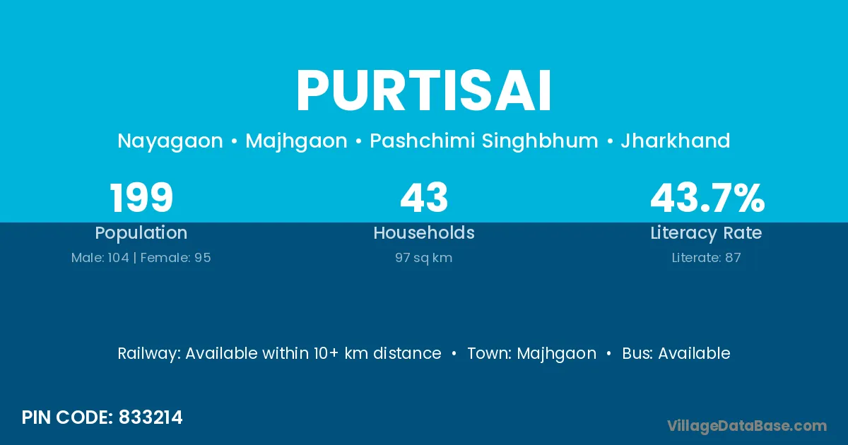 Purtisai village has a total population of 199 people, of which 104 are males and 95 are females.