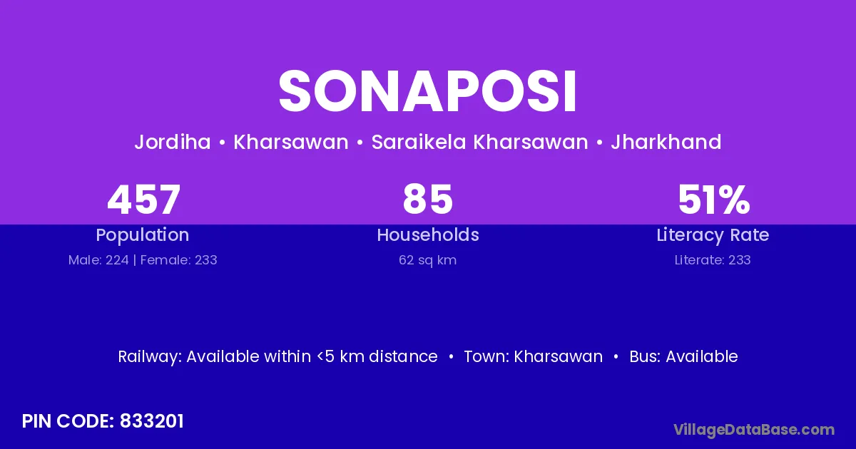 According to Census 2011 information, the village code of Sonaposi village is 833214.