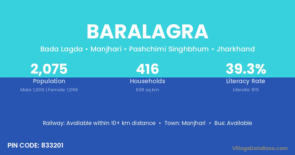 According to Census 2011 information, the village code of Baralagra village is 833201.