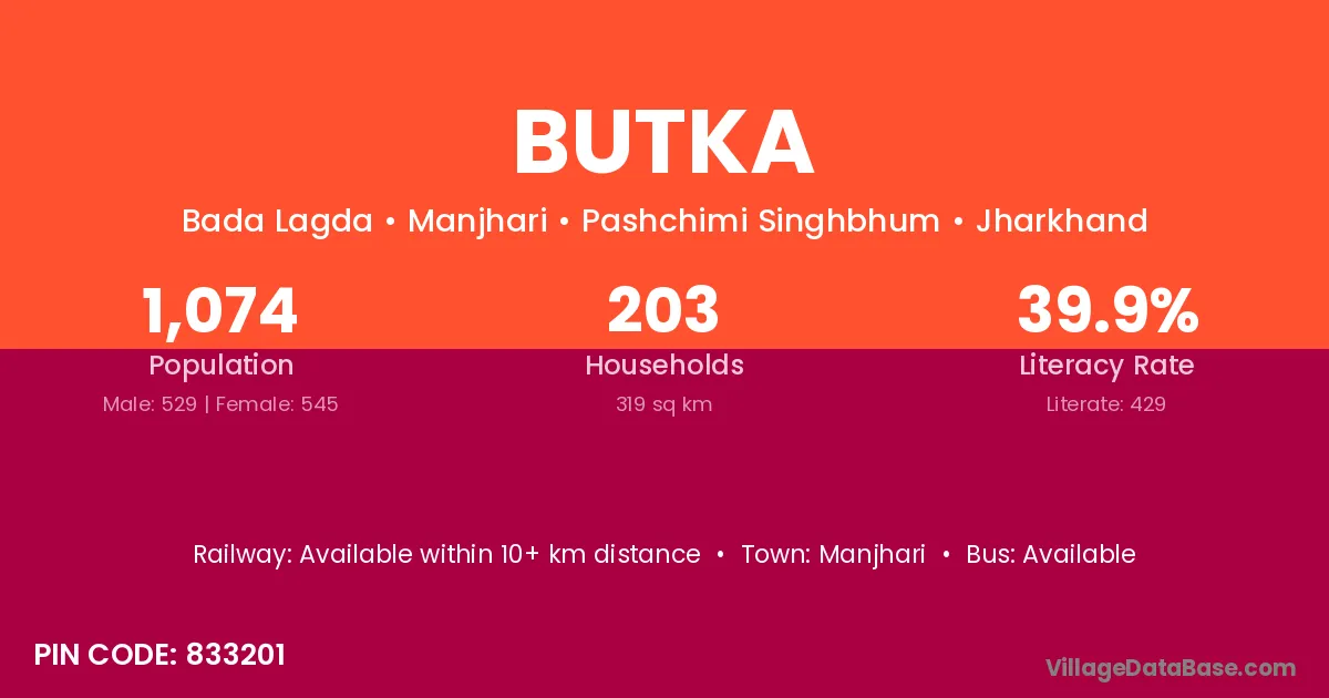 According to Census 2011 information, the village code of Butka village is 833201.