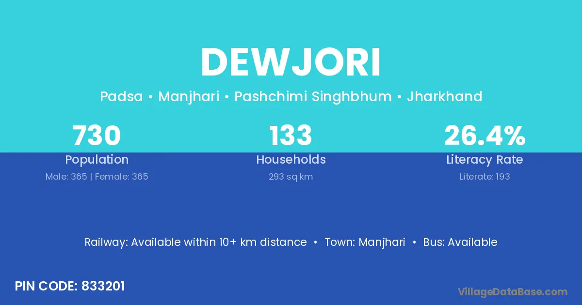According to Census 2011 information, the village code of Dewjori village is 833201.