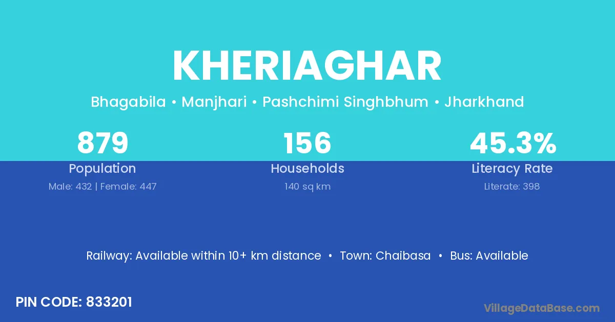 According to Census 2011 information, the village code of Kheriaghar village is 833201.