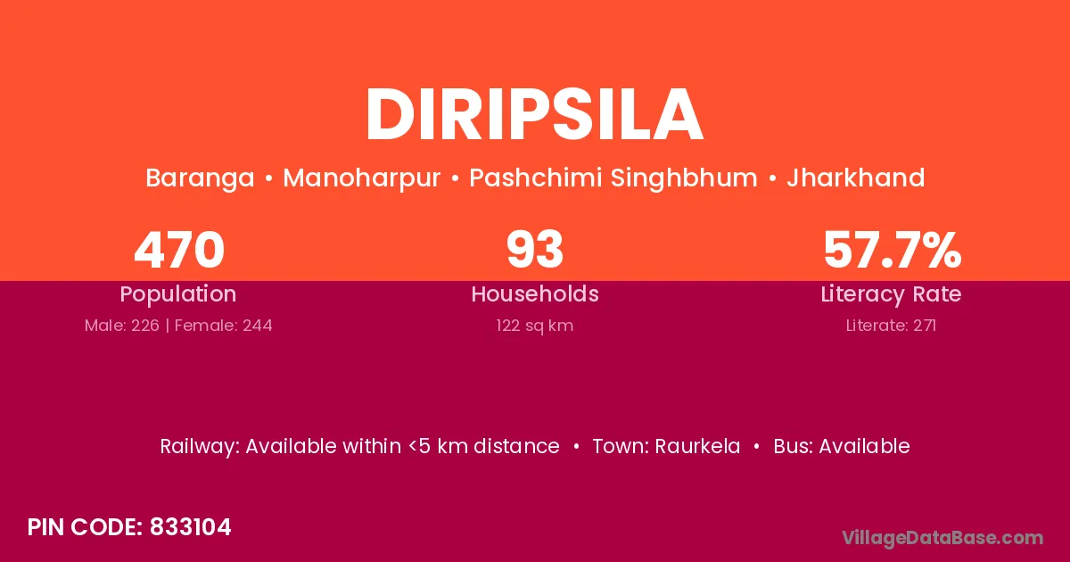 According to Census 2011 information, the village code of Diripsila village is 833104.