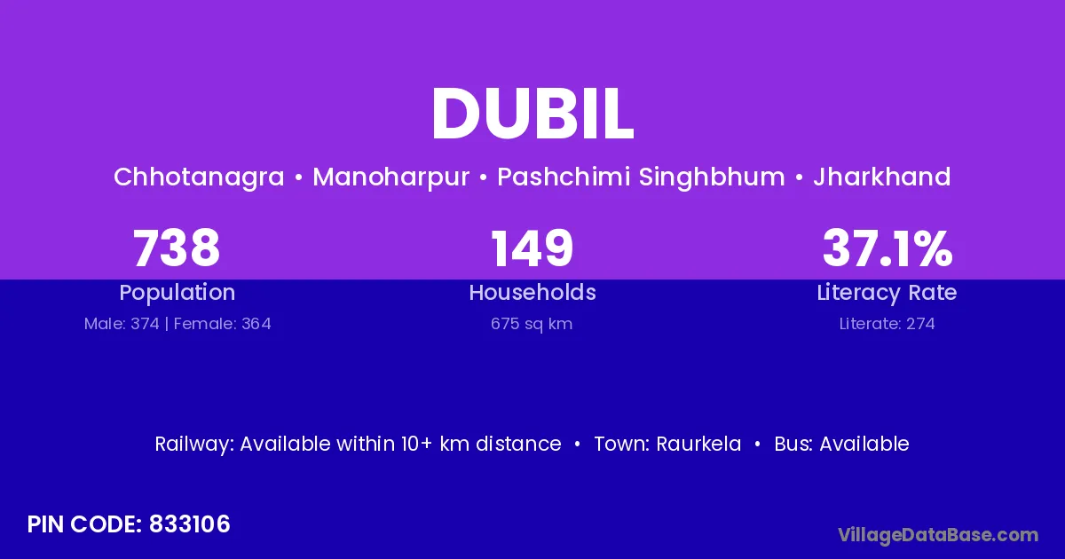 According to Census 2011 information, the village code of Dubil village is 833106.