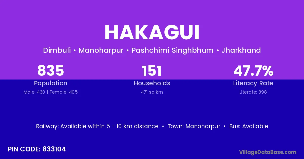 According to Census 2011 information, the village code of Hakagui village is 833104.