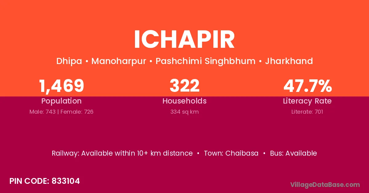 According to Census 2011 information, the village code of Ichapir village is 833104.