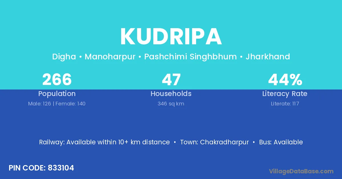 Chakradharpur is the nearest town to Kudripa village for major economic activities