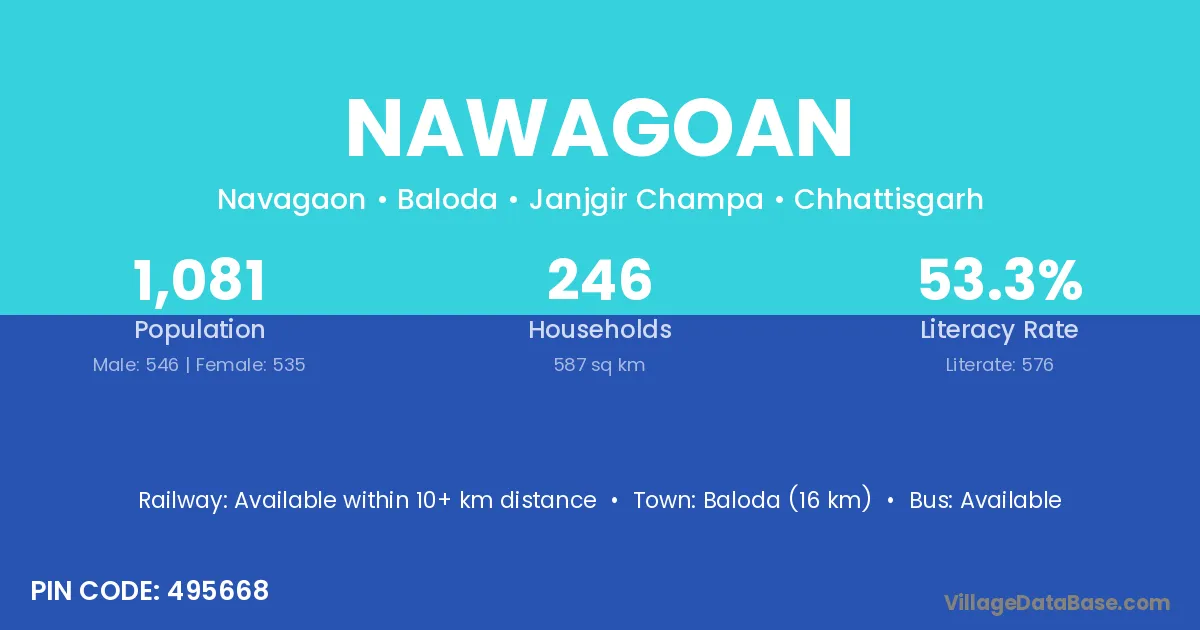The literacy rate of Nawagoan village is 42.79%. Male literacy stands at 54.67% and female literacy at 30.20%.