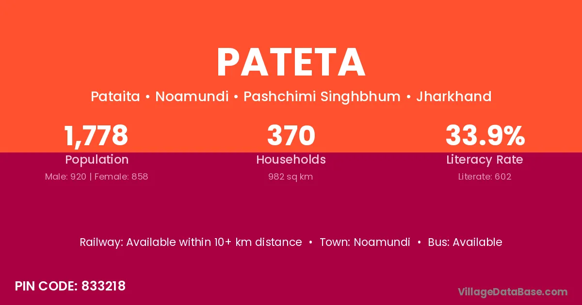 According to Census 2011 information, the village code of Pateta village is 833218.