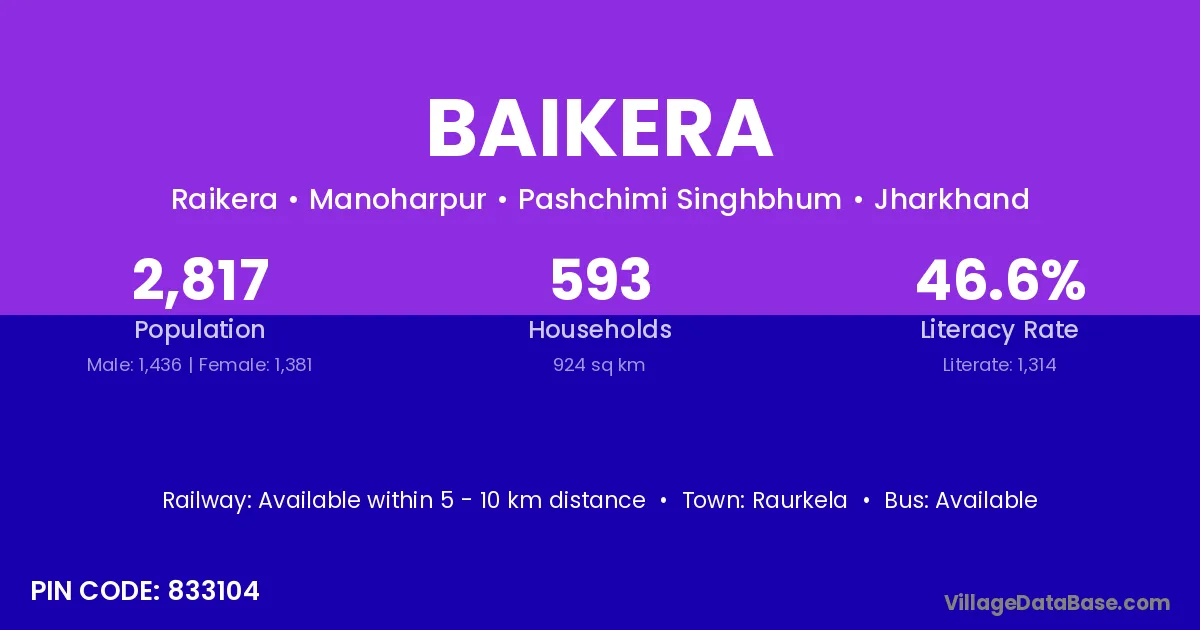 According to Census 2011 information, the village code of Baikera village is 833105.