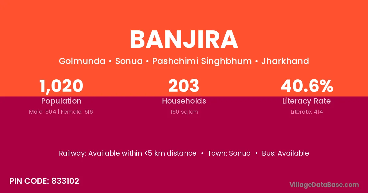 Banjira village has a total population of 1,020 people, of which 504 are males and 516 are females.