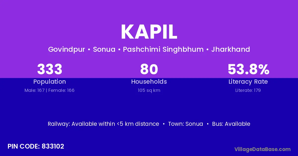 Kapil village is located in the Sonua Subdivision of the Pashchimi Singhbhum district in Jharkhand .