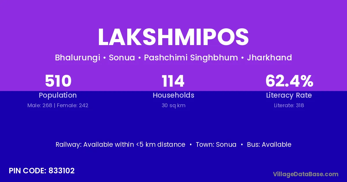 Lakshmipos village is located in the Sonua Subdivision of the Pashchimi Singhbhum district in Jharkhand .