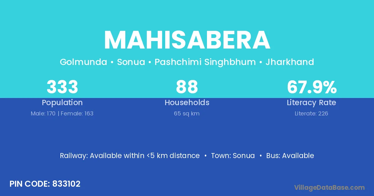 Mahisabera village is located in the Sonua Subdivision of the Pashchimi Singhbhum district in Jharkhand .