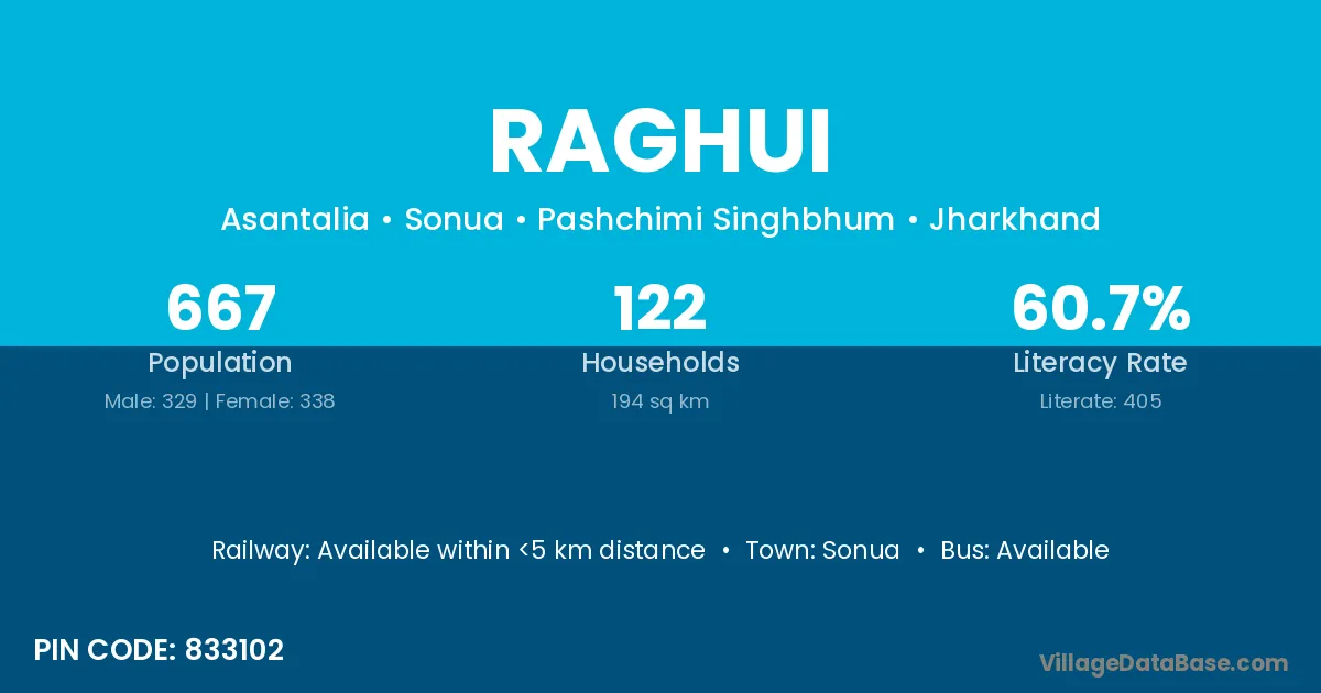 According to Census 2011 information, the village code of Raghui village is 833102.