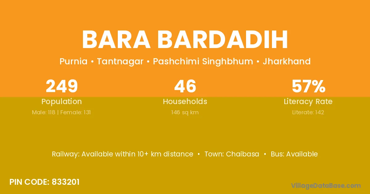Chaibasa is the nearest town to Bara Bardadih village for major economic activities