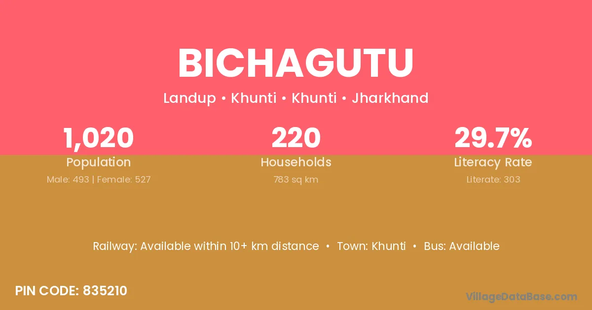 The literacy rate of Bichagutu village is 46.92%. Male literacy stands at 56.21% and female literacy at 37.79%.