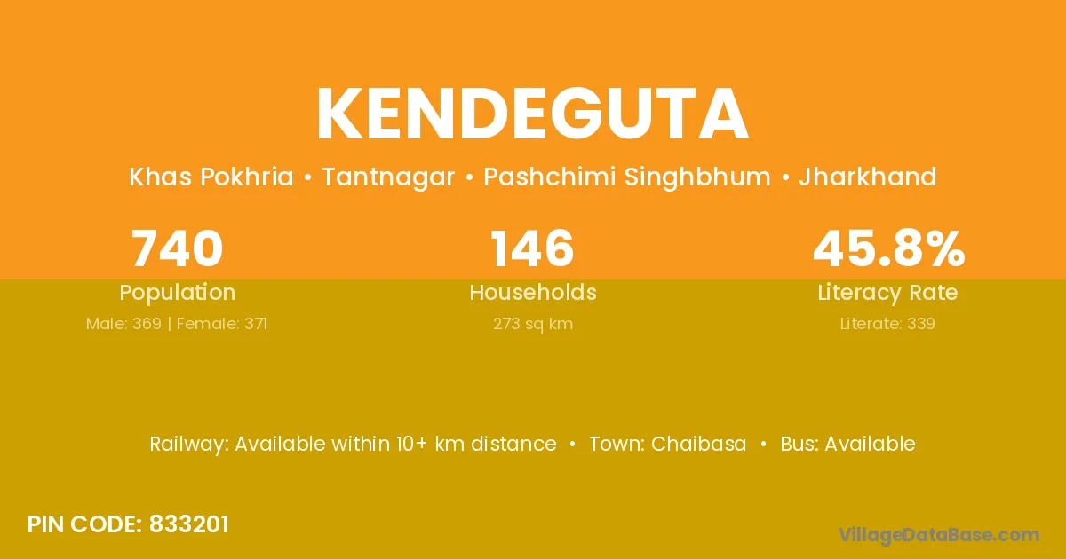 Chaibasa is the nearest town to Kendeguta village for major economic activities