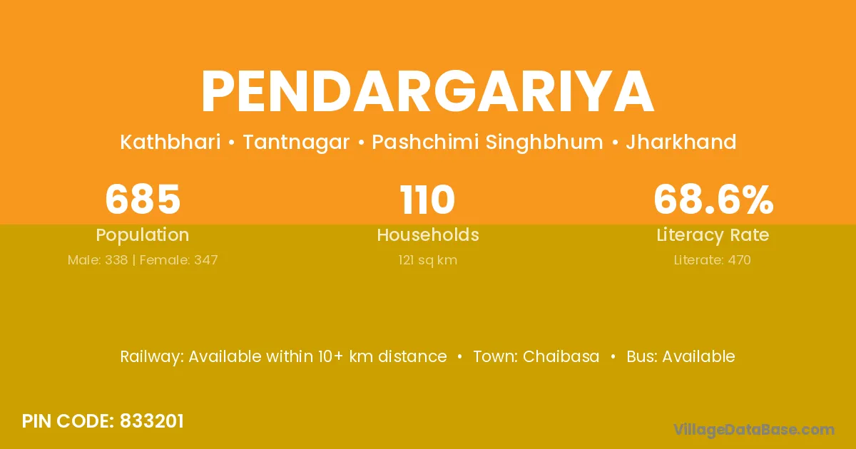 Chaibasa is the nearest town to Pendargariya village for major economic activities
